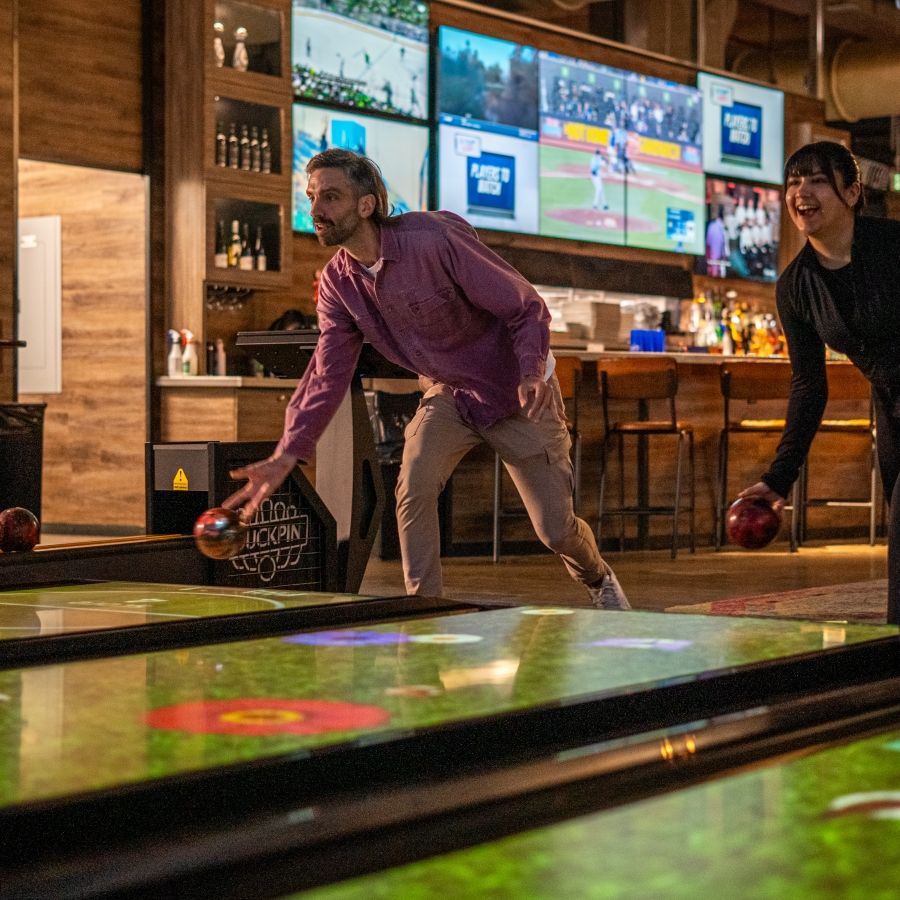 A NEW way to compete and have fun at The Club House! Duckpin Bowling has everything you love about bowling but fun sized and more interactive— with shorter lanes, smaller pins, fun games, and a ball that fits in the palm of your hand!